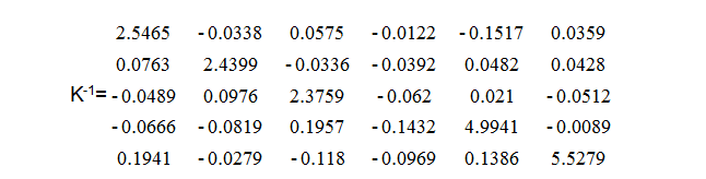 使用該逆矩陣,可以計算產生來自傳感器的任何一組同時數據的負載。 我們從逆矩陣K-1和方程式開始: